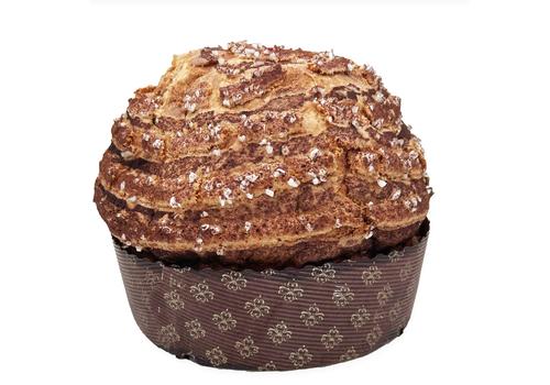 Traditionele Italiaanse 'Panettone' met een trio van chocolade, praline en vanille (500gr / 5-7 pers).